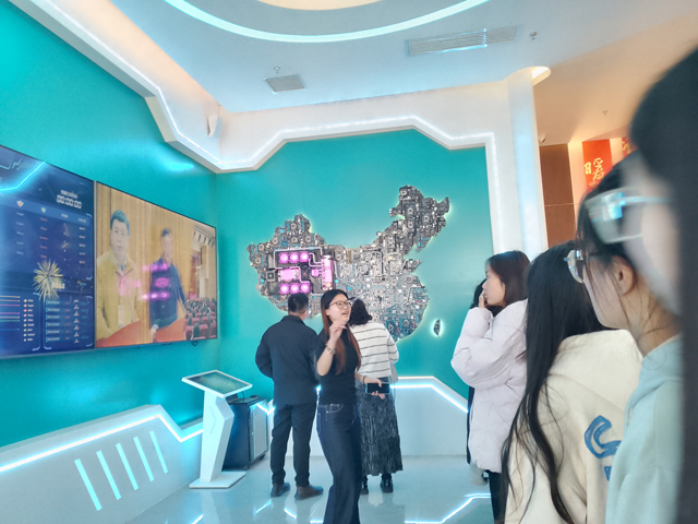 随后,学生们在企业负责人的带领下,近距离参观公司展厅,了解公司的企业文化、优秀员工经历及作为产学研应用型人才培养基地所具有的六大优势。这一环节不仅让学生们了解了公司的技术实力和市场地位,还深刻感受到了公司从理论学习到实践应用、再到职业发展的全方位、多层次的培养体系。