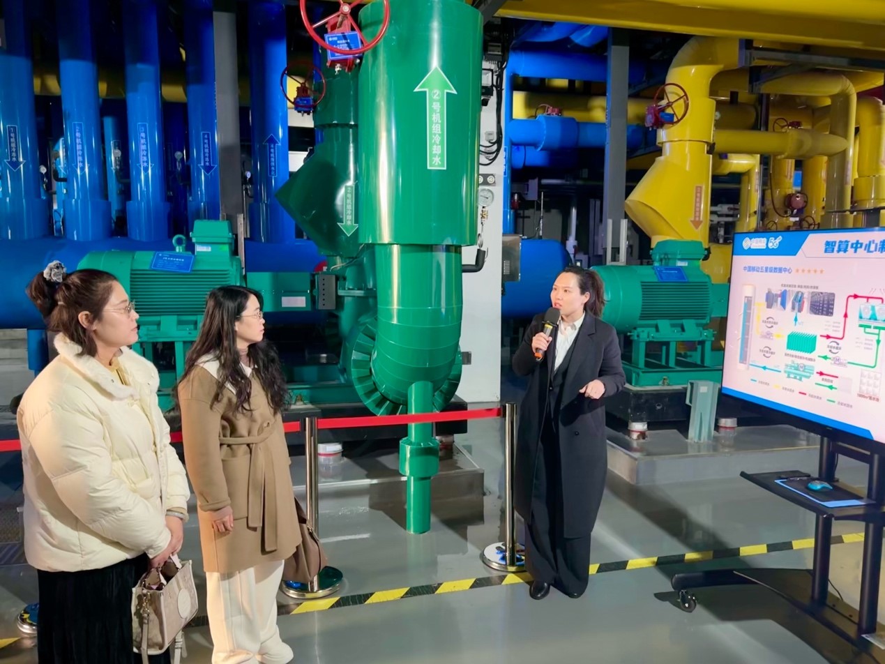 参观期间,一行人首先深入智算中心算力机房,详细了解高密度服务器集群的运行架构与算力调度模式,通过实时监控系统直观感受每秒上千万亿次的运算能力。此外,讲解员重点介绍了分布式发电设备与高效水冷系统的协同工作原理,这套绿色供能体系具备制冷效率高、安全可靠性强的显著优势。