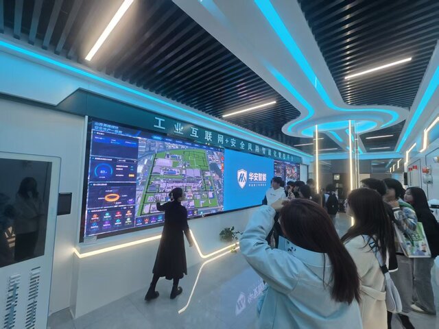 随后,学生们参观了华安智能现代化的生产设备与物联网系统应用场景。公司通过传感器网络、云平台、大数据分析等技术,实现对生产过程的实时监控、设备状态的智能诊断、生产安全风险的预警与管控。参观过程中,学生对工业互联网+安全风险智能化管控平台的整体流程有了更加直观且深刻的理解。