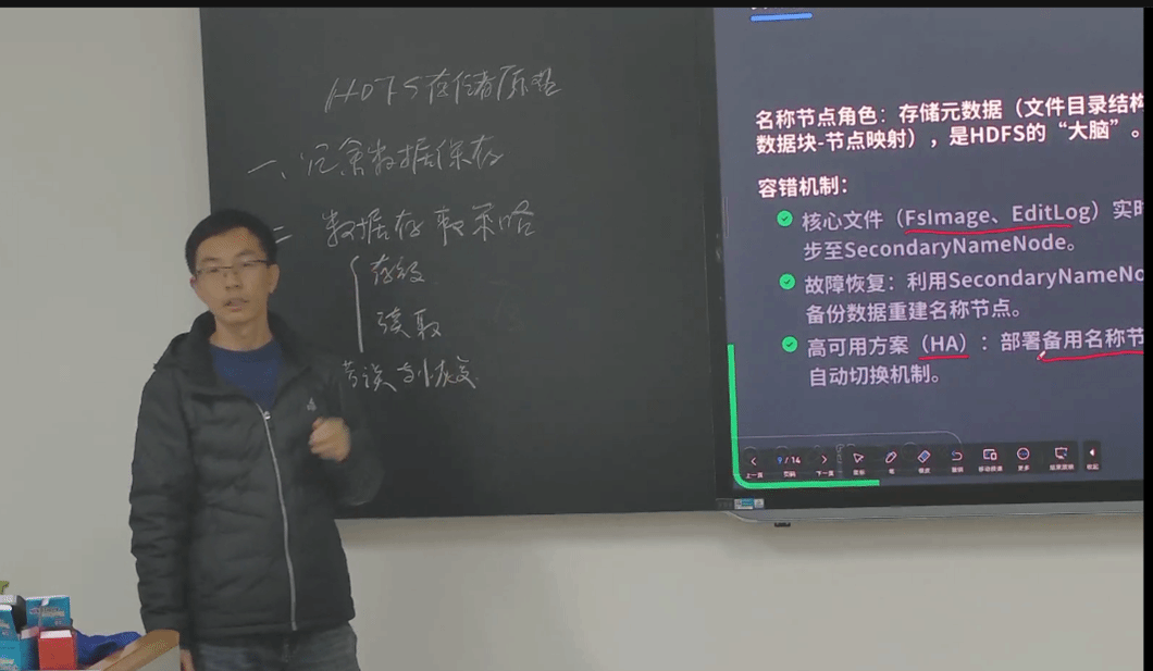 本次活动中,刘海峰老师以《大数据技术原理与应用》课程中的“HDFS存储原理”为主题,系统讲解了冗余数据保存机制、数据存取策略以及数据错误与恢复方法。刘老师结合真实应用场景,深入剖析了HDFS的核心机制,教学内容逻辑清晰、案例生动,展现了扎实的专业功底与娴熟的课堂驾驭能力。