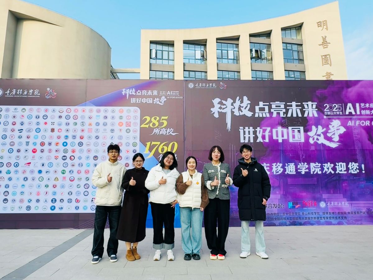 调研期间,师生现场观摩了2025古剑山·大学生AI艺术应用创新大赛颁奖典礼。这场以“用AI讲好中国故事”为主题的国家级赛事,为我院学科竞赛与创新教育提供了鲜活范式。大赛突破了单纯技术比拼,构建起“技术+艺术+人文”融合的创新平台,其跨界组织模式与成果导向机制,为我院优化赛事体系、推动以赛育人带来了直接启发。
