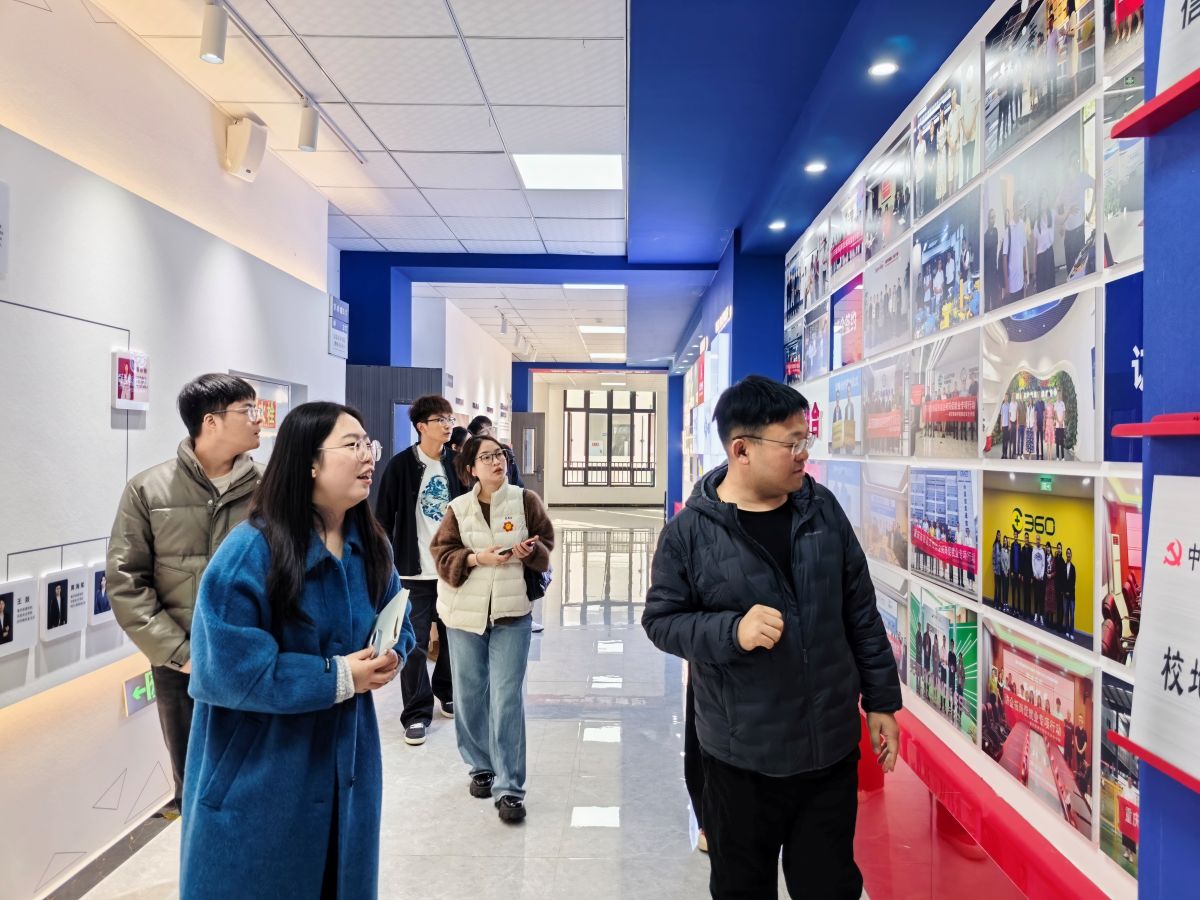 在大数据学院,院长潘显兵对调研组的到来表示热烈欢迎。双方表达了深化合作、共同探索信息类人才培养新路径的期待。大数据学院党总支副书记阙小梅系统介绍了学院学生工作特色;副院长吕云山重点分享了大数据专业在课程建设、产教融合等方面的成果。在交流环节,两院辅导员围绕学生社团活力激发、艺术修养与实践能力协同提升等完满教育工作话题展开热烈讨论,学生代表也分享了各自校园成长体悟。座谈后,调研组实地参观了公共大数据安全重点实验室。