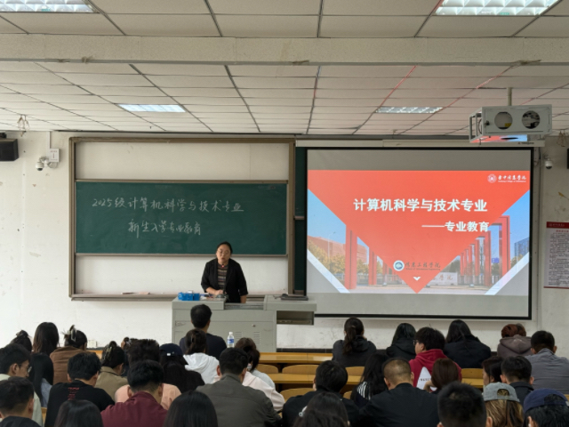 为帮助2025级全体新生全面了解专业特色、明确专业方向、强化专业认同,科学规划学习生涯,计算机科学与技术教研室于2025年9月17日在2教101召开新生入学专业教育活动。本次活动由教研室主任李青云老师主持,张学良、郤伟等专业教师共同参与,通过多维度讲解,为新生清晰勾勒出专业学习与未来发展的蓝图。