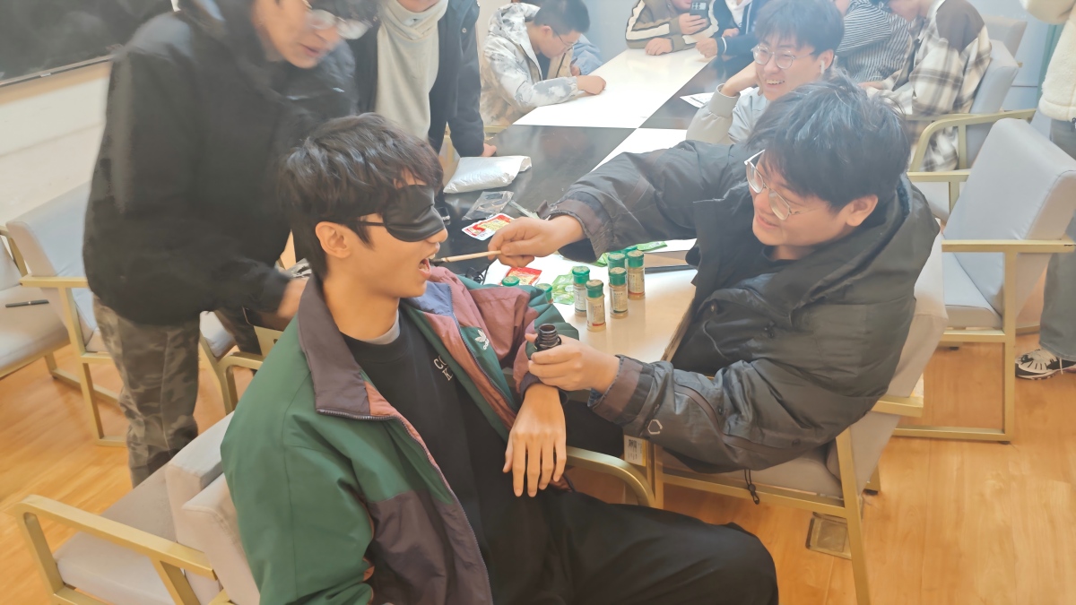 10月22日下午,太行书院党支部会议室里“酸甜苦辣咸”齐上阵——区块2402班首次味觉团建火热开赛。三位同学率先品尝苦瓜汁,拧成“川”字的眉头,让现场笑声不断,活动序幕就此拉开。参赛同学两两组队,一人戴眼罩品尝调料,一人根据30秒描述作答,恶趣挑战让大家哭笑不得,贴成一面“五味留言墙”和“酸甜苦辣咸”的全家福,为团建留下温暖注脚。此次活动让软件2402班成为更温暖、更有战斗力的集体,未来,大家将在每一次并肩作战中持续升温,迎接属于他们的更多“滋味”挑战。