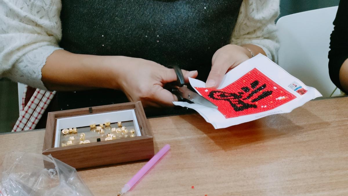 10月23日下午,信息工程学院异科导师伦老师,在毣谷书院·故事编辑部开展手工钻石粘贴画活动,共赴一场指尖创作之约。活动现场,伦老师为学生分发含“福”字、“前程似锦”字样钻石画及金色元宝摆件的材料包。师生围绕黄金价格轻松调侃,氛围热烈。创作中,老师细致指导钻石定位、防脱落等技巧,学生相互交流经验,空白画布渐现饱满“福”字与灵动字体。此次活动,既让学生感受手工乐趣,传递美好祝愿,更拉近师生距离,以温暖互动为校园生活添彩。