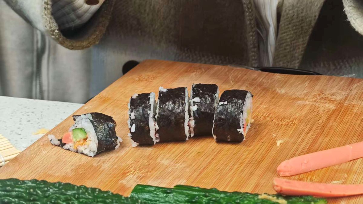 10月24日,计科2403班在上河书院右岸厨房成功举办了一场别开生面的"手工创意+美食实践"主题团支部活动。本次活动精心设计了"拼豆造趣"和"寿司鲜体验"两大实践环节,大家分组参与了“拼豆造趣”手工创作和“寿司鲜体验”美食制作,通过团队协作完成创意拼豆作品并亲手制作寿司。当大家围坐在一起分享劳动成果时,欢声笑语不绝于耳,彼此间的情谊在共同创作和品尝美食的过程中得到了深化。这场富有创意的活动让大家在紧张学习之余放松了身心,且通过实践操作增进了交流与理解,有效提升了班级的凝聚力和向心力,充分展现了当代大学生团结协作、勇于创新的精神风貌,为班级文化建设注入了新的活力。