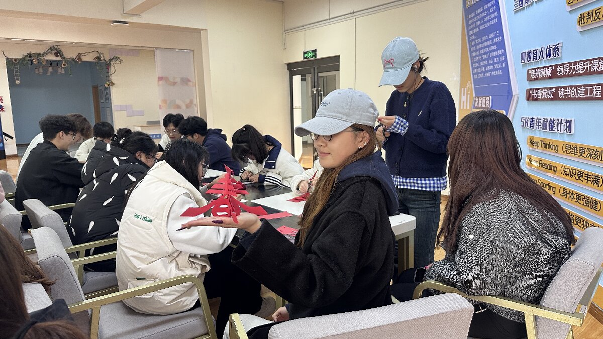 10月23日下午,数字2403班以传统剪纸艺术为桥梁,开展“剪艺拾光,纸韵匠心”手工体验活动,在一折一剪中感受非遗文化的细腻,在专注创作里拾取慢时光的治愈。同学们各展创意构思图案,通过折叠与裁切的配合,“春”字呈现出凸起的立体质感,保留传统韵味,又添手工创意;“福”“喜”与花草纹样结合,让文字与图案相映成趣。灵活运用折剪技法,直线干脆利落,曲线放缓节奏,处理立体结构连接点时格外细致,避免破坏整体。此次活动,让大家在动手创作中锻炼能力,增进了彼此情谊,未来,数字2403班将继续探索更多传统文化形式,在传承与创新中书写青春与文化交融的精彩篇章。