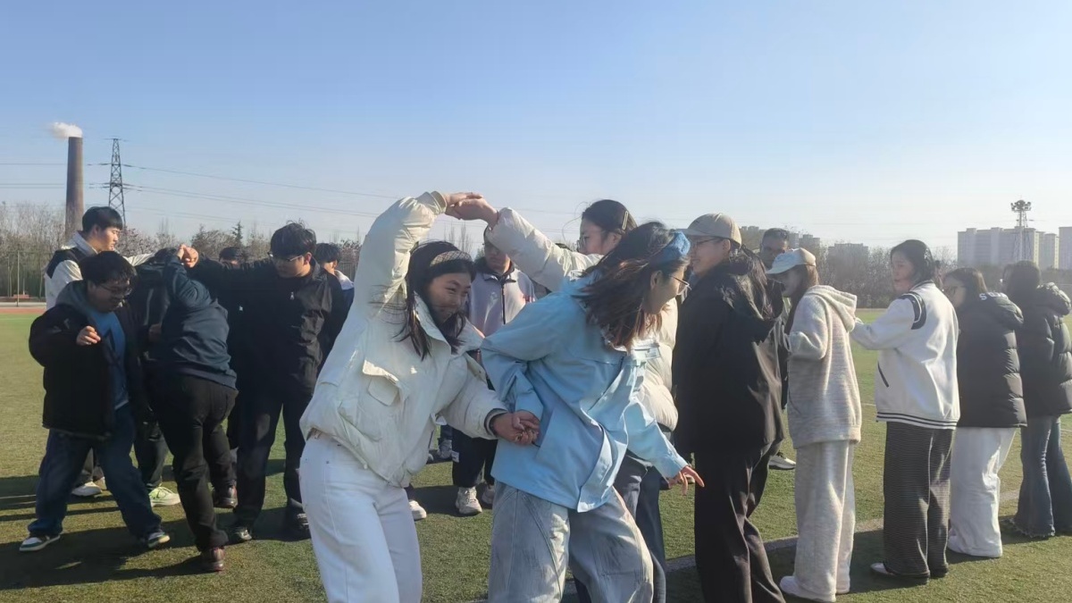 11月19日下午,网工(专升本)2503班于操场开展“突破心墙 赋能团队”体育趣味活动。在“四阶跃迁”环节中,同学们围圈猜拳定升降级,输者即刻重回队列重试,赢时相视欢笑,陌生感慢慢消融;随后“钻山洞”项目,前排同学弯腰稳固搭“洞”,后排依次俯身穿过,有人扶稳队友腰背,有人轻声提醒低头幅度,全程配合默契。此次活动拉近了班级成员距离,彼此间的信任与协作意识得到提升,为日常学习中的难题研讨、生活里的互助帮扶筑牢基础,让班级向心力更足,也让同学们在互动中更清晰体会到集体协作的价值,助力班级氛围持续融洽向上。
