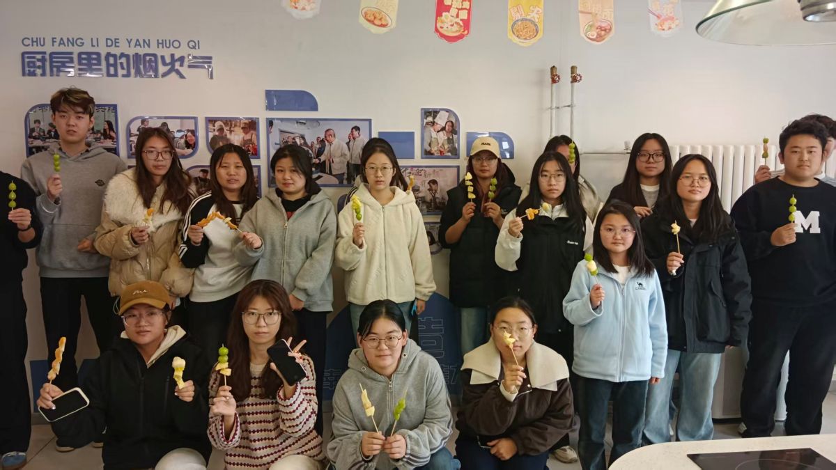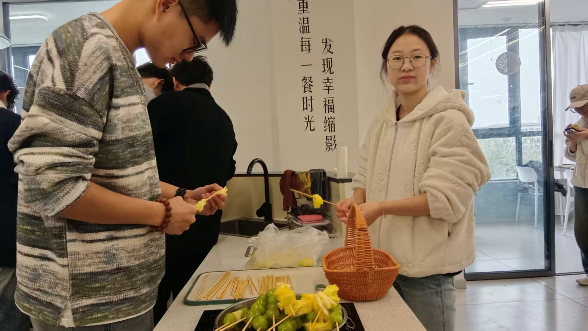 11月12日下午1:00-2:00,网安2402班在6F望野·共享厨房开展了以“指尖串甜蜜,校园暖冬行”为主题的完满团支部活动。活动中,同学们自由分组,围绕各种食材展开创意创作。大家从熬糖的火候把控到裹糖的均匀度调整,期间不时交流技巧,现场笑声不断,一步步体验糖葫芦的传统制作工艺,将一颗颗普通食材变成了串串甜蜜的“冬日惊喜”。此次活动不仅让同学们亲身感受传统美食的魅力,在实践中传承民俗文化,有效缓解了学业压力。也进一步凝聚了班级向心力,为完满教育的开展添上了一抹香甜的色彩。