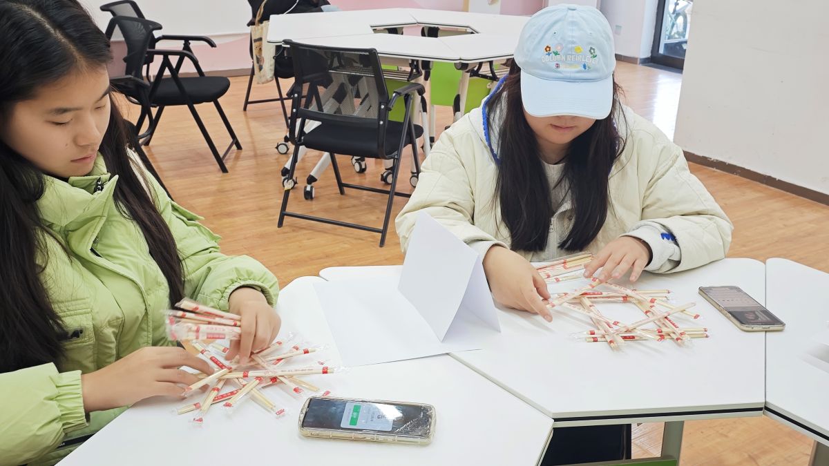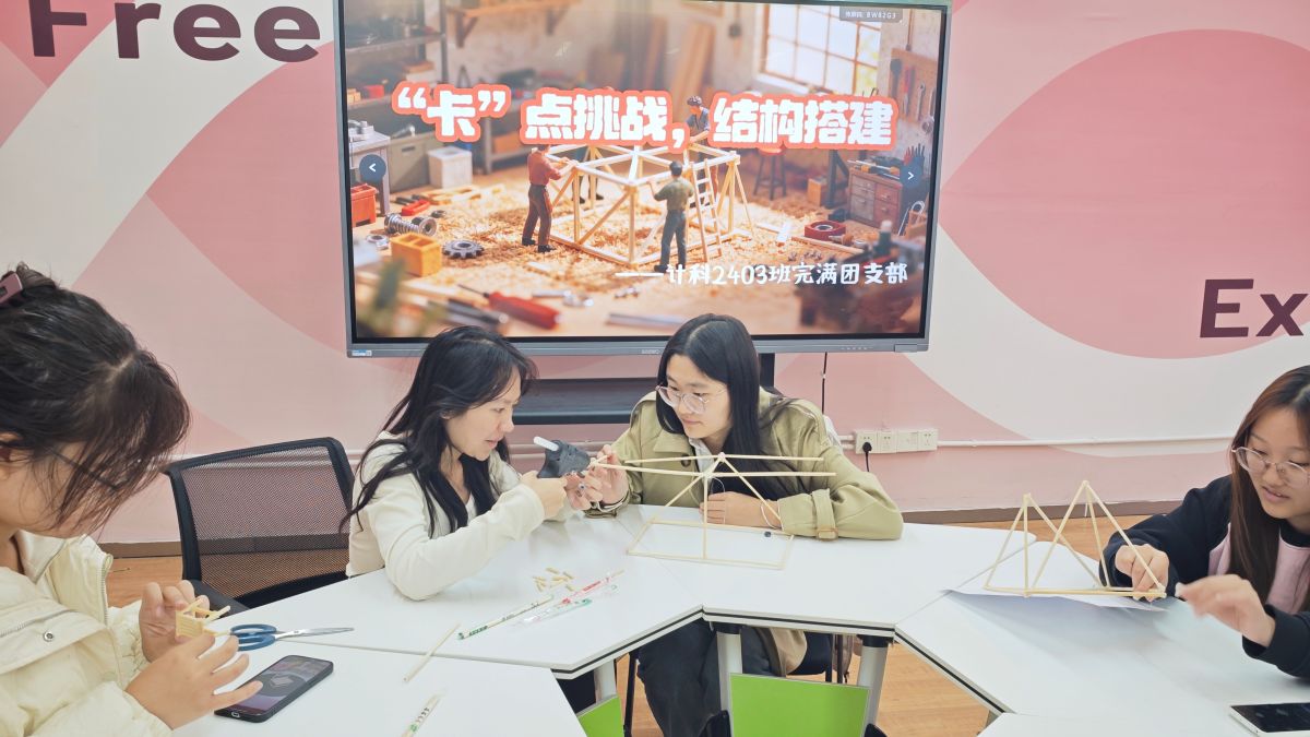 11月15日下午,信息工程学院计科2403班在杏花书院Lucky room举办了“卡点挑战,结构搭建”完满团支部活动。同学们以小组形式,利用纸卡、热熔胶枪等材料,结合AI建模与智能创意,在一小时内协作完成了各类结构模型。活动不仅锻炼了动手能力和团队协作,更将专业知识融入实践,有效激发了创新思维,达到了寓教于乐的效果。这种将创意构想转化为实体作品的经历,不仅锻炼了空间想象能力,更培养了严谨细致的工程素养。在有限时间内完成从概念到实物的跨越,让参与者体会到创新思维与动手实践相结合的价值。