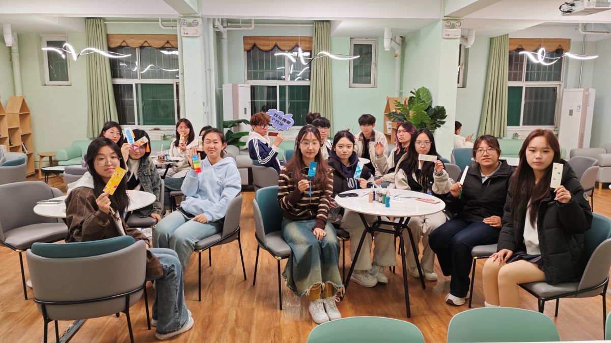 11月15日15:00-16:00,计科2402班在101青藤共享厅开展“笔尖绘签,方寸藏趣”艺术实践活动。活动中,同学们以自然草木、动漫角色、励志短句为灵感,用马克笔、水彩在书签上勾勒创意;完成后展示作品、合影互动,不少同学交换书签传递心意。此次活动以方寸书签为媒介,在艺术创作中涵养审美意趣,于分享交流中缔结同窗情谊,既为校园文化添注艺术活力,更助力学子在实践中实现审美素养与社交能力的协同发展。