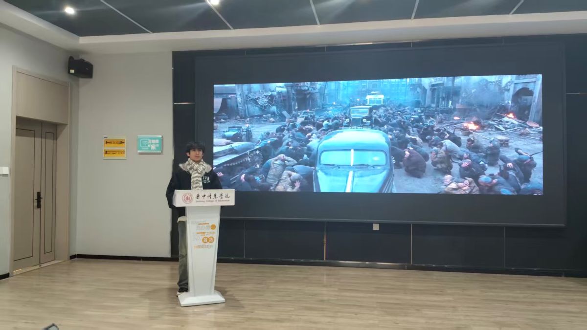 计科2401班于11月19日在208山河赋能空间开展“南京相馆,光影之约”艺术实践活动,组织观看历史纪实影片《南京照相馆》。活动现场,同学们肃穆就座、静心观影,跟随影片镜头回望1937年南京城的岁月,被平凡民众守护历史底片的事迹触动。此次活动以光影为载体,让同学们在直观体验中触摸历史、感悟家国情怀,进一步凝聚班级情感,引导大家铭记过往、砥砺前行。