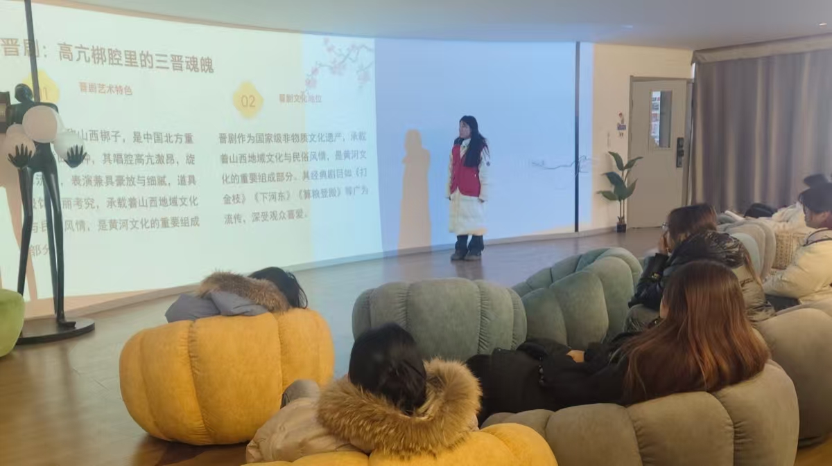 为了让中华民族的优秀传统文化在校园的每一个角落生根发芽,让晋剧艺术在新时代熠熠生辉,信息工程学院的“晋剧会说话”文化推广专项志愿服务队,11月27日上午,在毣谷书院故事·时“间”倾力打造了一场别开生面的科普分享盛宴。他们走进晋剧经典《打金枝》,在悠扬的旋律中领略传统文化的魅力,在角色剖析中展现青年担当。