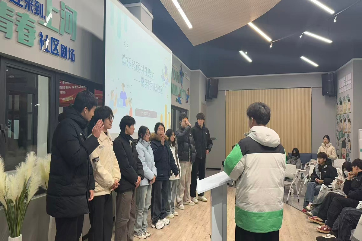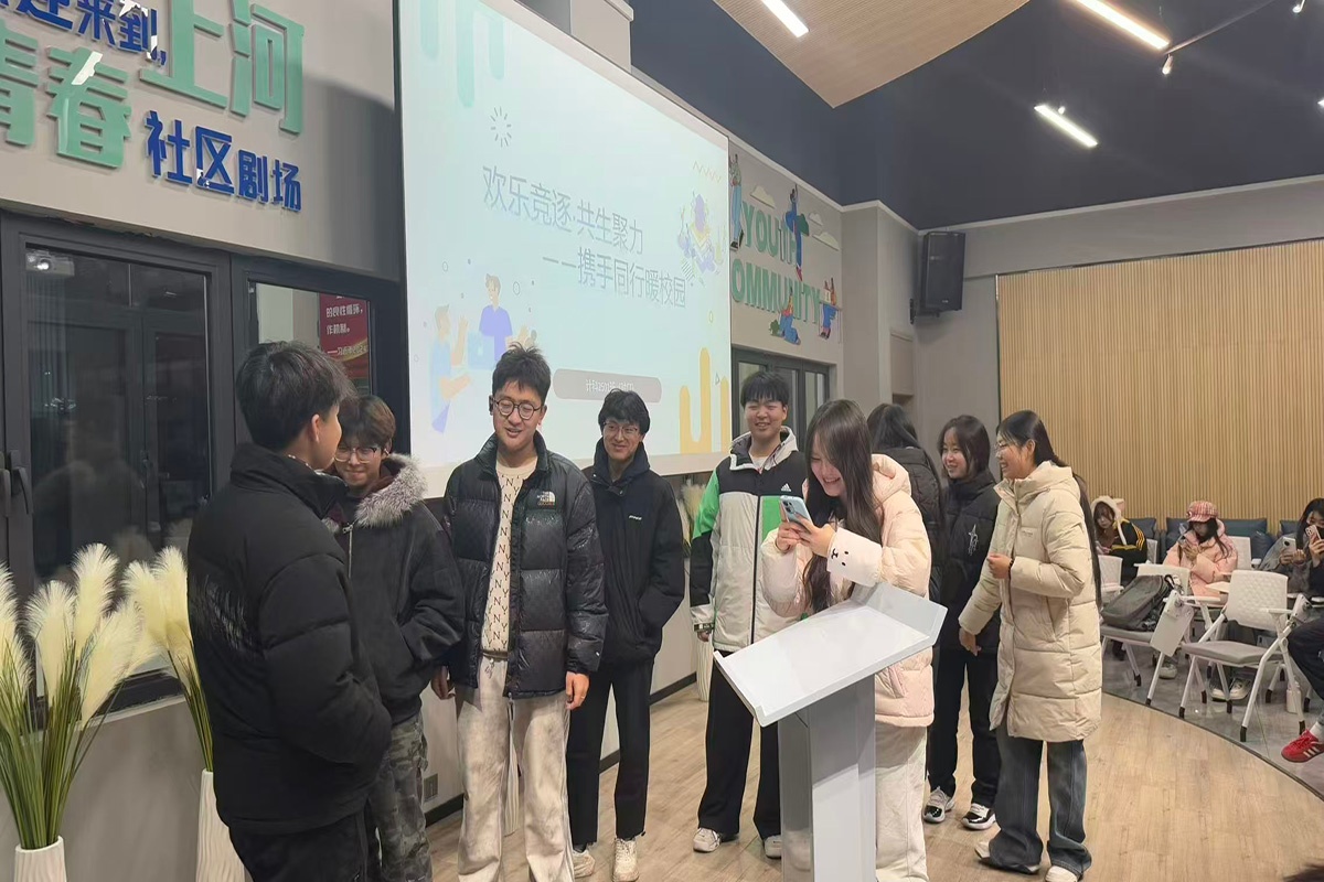 12月11日,计科2501(对口)班在上河书院·圆心青春社区剧场举办“欢乐竞逐·共生聚力——携手同行暖校园”主题活动。“反向指令”破冰游戏快速活跃氛围,随后“胡辣汤蹲”“听歌识曲”“传声筒”等趣味游戏接连上演。同学们在协作闯关、竞技互动中相互配合、增进默契,现场欢笑不断。活动尾声,全体同学创意合影定格美好瞬间,不仅丰富了课余生活,更有效凝聚了班级向心力,让大家感受到集体的温暖与力量。