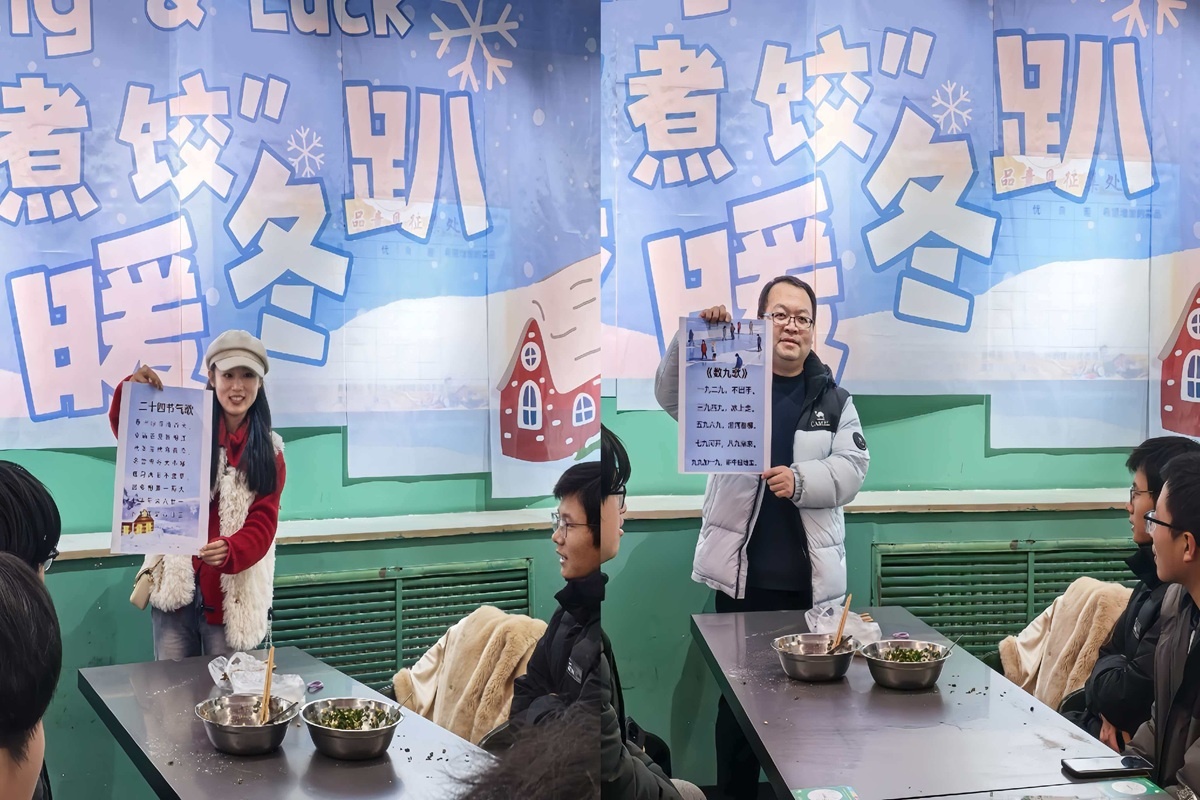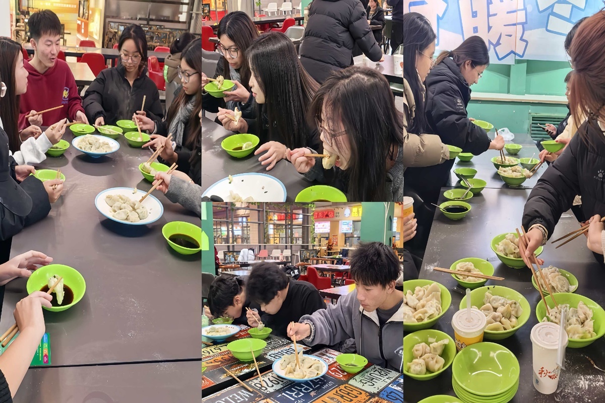 12月19日,计科2502(对口)班以冬至为契机,开展“冬至的‘饺’量,是青春里最暖的‘家’味”主题活动,辅导员与异科导师受邀参与。活动伊始,同学们签署诚信考承诺书、写下期末寄语,还共同诵读《数九歌》《二十四节气歌》传承文化。随后师生携手包饺子,辅导员现场展示特色扯面技艺,大家在动手实践中互帮互助。最终,同学们围坐共享亲手包的饺子,在美味中凝聚情谊,让班级成为温暖的“大家庭”。