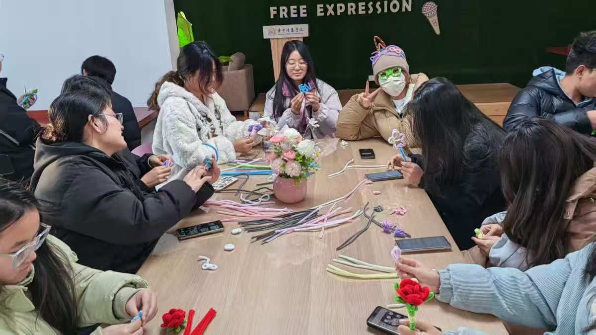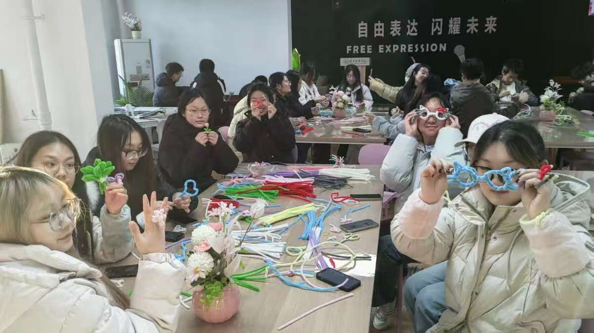 12月17日下午,计科2404班于杏花书院表达力大厅举办“指尖经纬·扭趣无限”趣味扭扭棒创意手工活动。活动中,各色扭扭棒与辅助材料提前备齐,同学们自由发挥想象,通过弯折、缠绕与组合,将蓬松线材塑造为萌趣动物、绚丽花卉、个性饰品乃至抽象艺术小品。创作中,大家不时交流技法,互帮互助,现场氛围专注而活跃。此次活动不仅让同学们在动手实践中释放学业压力,更有效激发内在创造力,培养耐心与专注的品质,提升了审美与协作能力,为班级文化生活注入了新鲜的活力与凝聚力。
