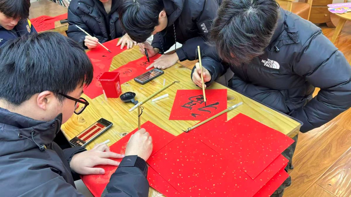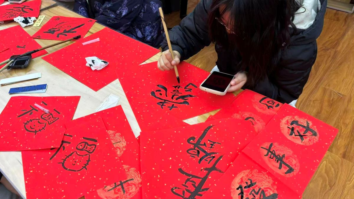 12月12日下午,计科2403班在三达书院意空间成功举办了"联剪传情,志愿暖冬"主题文化活动。同学们以个人或小组形式,运用红纸、笔墨等传统材料,结合对传统楹联文化的研究与创新理解,在活动中创作出多幅春联作品。通过将传统文化知识与实践创作相结合,活动有效提升了同学们的人文素养,深化了对志愿服务精神的理解。将美好祝愿转化为墨香四溢的实体作品,既锻炼了文学表达与艺术创作能力,也培养了细致专注的文化传承意识。在创作过程中完成从文化理解到艺术表达的跨越,让参与者深刻体会到传统文化与现代生活相融合的意义,以及通过笔墨传递温暖、奉献爱心的价值,达到了文化育人、实践润心的良好效果。