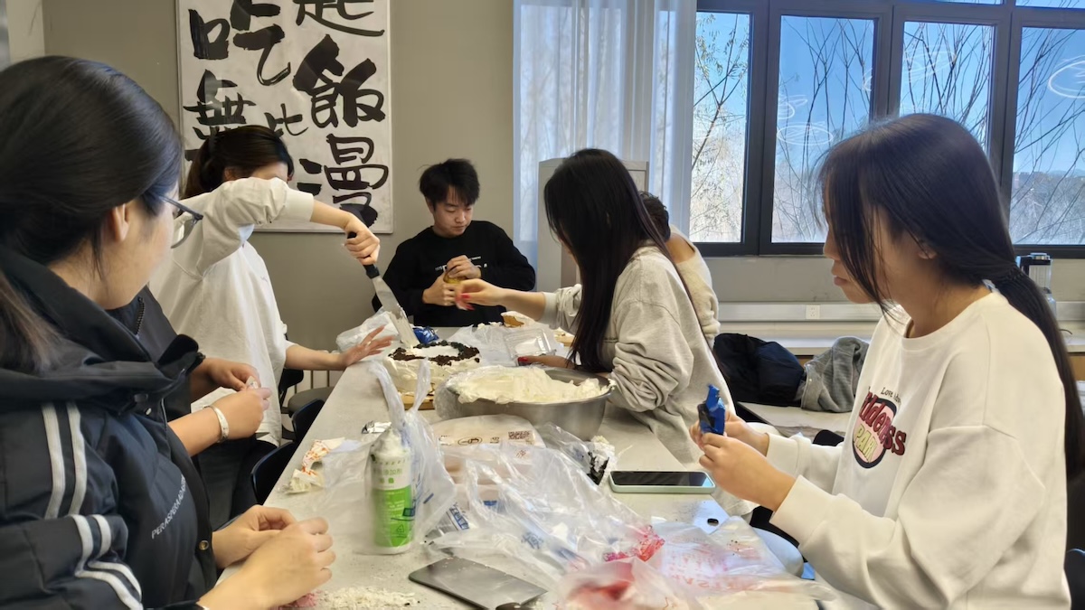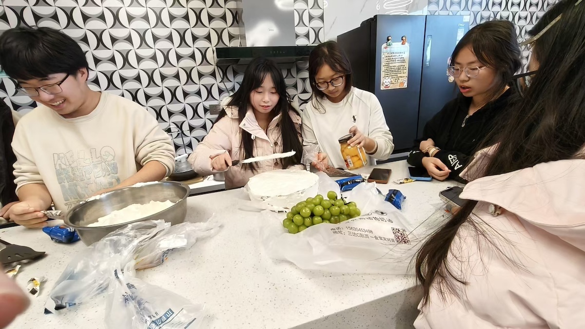 12月3日下午,计科2501班的同学们在上河书院右岸厨房开展了以“甜蜜时光·蛋糕DIY”的竞技体育活动。活动中同学们迫不及待开启“创作模式”以小组的形式开启分工协作,一人抹奶油、一人切水果、一人做装饰,同学们捧着自己的“作品”开始合影,奶油的甜香混着水果的清爽,让连日敲代码的疲惫一扫而空。活动尾声,大家还把蛋糕切成小块互相分享,有人吐槽“自己做的蛋糕,再丑也要吃完”。