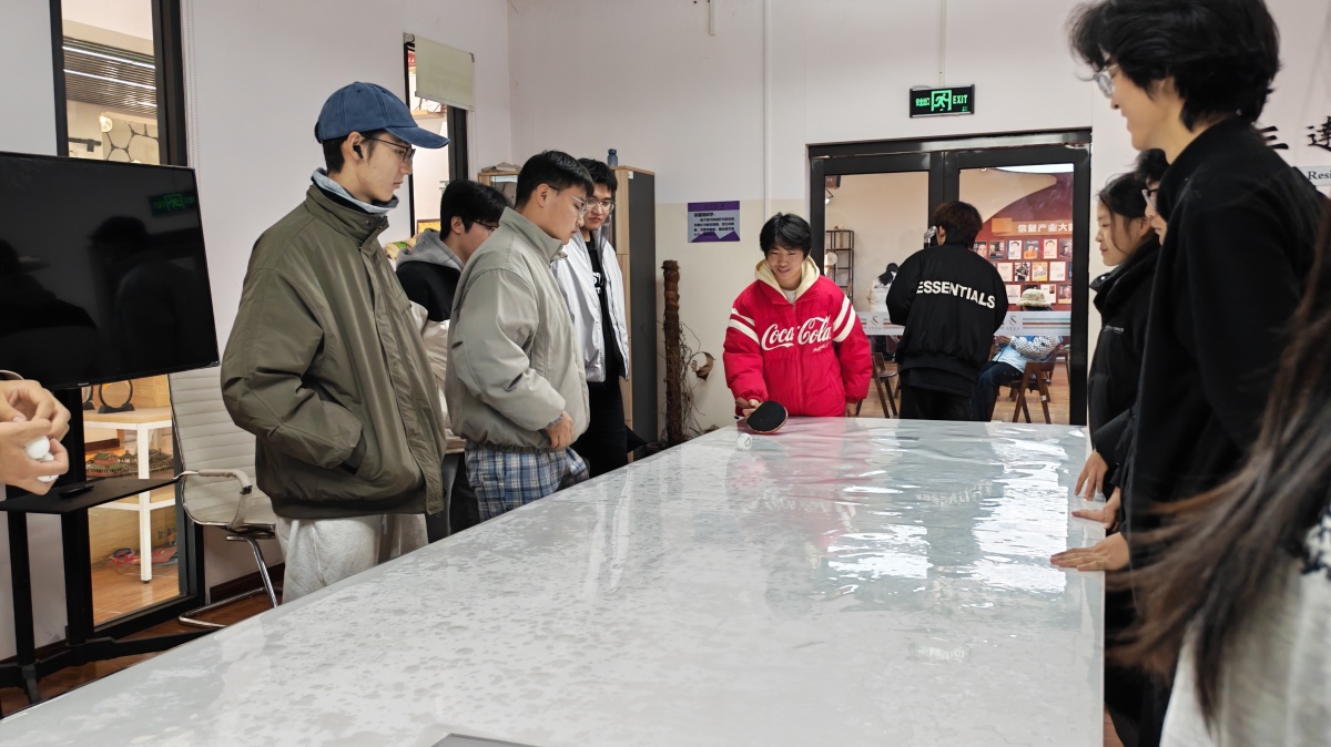 12月12日下午,软件2503班于三达书院203会议室,举办了主题为“执筷承乒,逐风渡水”的趣味乒乓球竞技体育系列活动。活动伊始,同学们在长桌两侧倾听游戏规则,现场分组时立刻化身为趣味竞技的欢乐海洋。“纸上传奇”要求小组成员用A4纸折叠成轨道,合力将乒乓球安全传递至终点,乒乓球在脆弱的纸道上惊险滑行,引得阵阵惊呼与欢笑;紧接着的“执筷运兵”挑战升级,大家需用筷子夹起乒乓球进行接力,这不仅是对手部稳定性的极致考验,更是对耐心与细心的磨练。压轴环节“对打击字”则将活动推向高潮,对打过程中,双方队伍需辨识并喊出乒乓球上展示的字词,乒乓球的清脆击打声与同学们猜字的声音交织在一起,充分展现了班级活动的独特趣味。活动让乒乓球运动焕发出新的生机与趣味,真正实现了让同学们在快乐中运动,在运动中成长,活动比拼中融入了智力与反应速度的较量,为完满教育注入了蓬勃的青春活力。