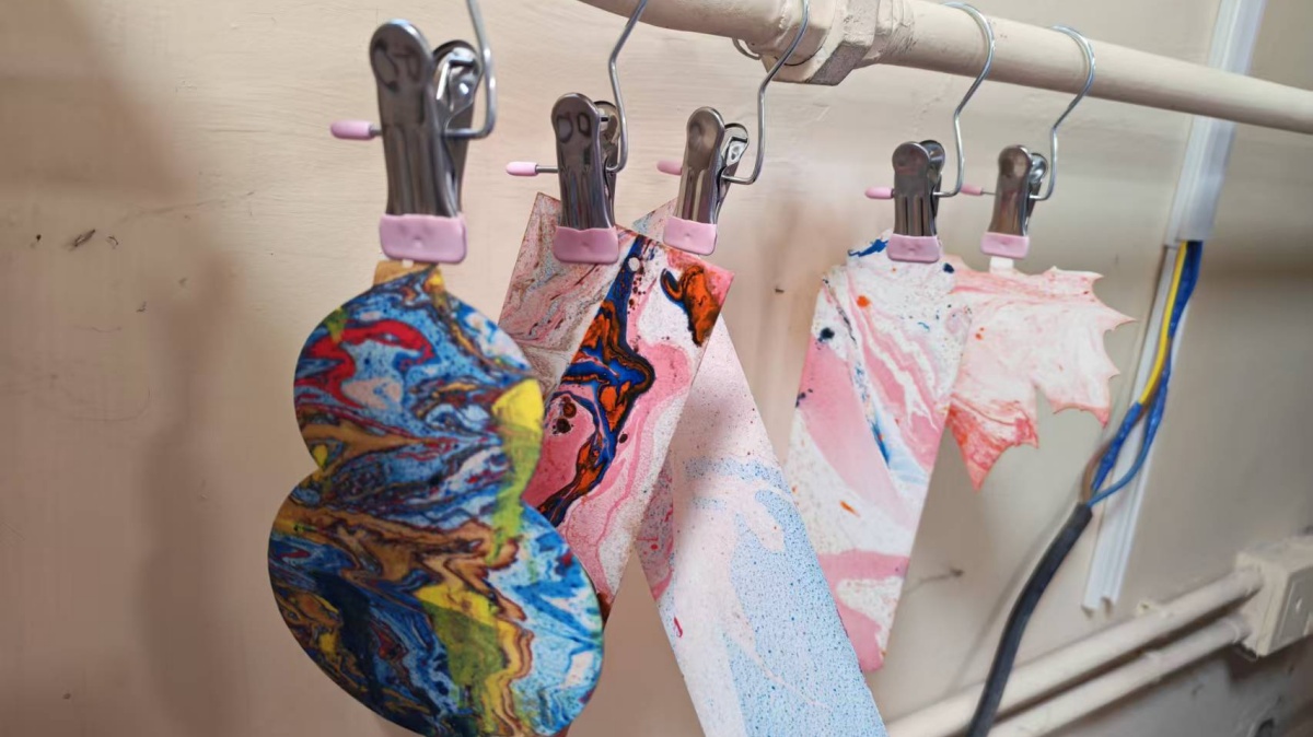 12月17日下午,计科2305班于太行书院112漫趣·拾光轻家宴开展“指尖传承,非遗新韵”漆扇制作非遗体验活动。团支书讲解漆扇的历史渊源与文化价值,让同学们对漆艺有了全新认知后,相关人员现场演示核心步骤,细致讲解基底处理、漆料调配、图案绘制等技法及漆料风干、色彩搭配的要点;演示结束后,同学们动手创作,结合水拓颜料与非遗水拓技法,用不同材质和造型的坯料制作出枫叶、蝴蝶、葫芦等漆扇作品,现场满是创作的喜悦与成就感。此次活动让同学们在亲手创作漆扇的过程中,沉浸式感受非遗漆艺的美学韵味与工艺智慧,有效提升了大家对传统非遗文化的认知与传承意识;同时,动手实践的过程也锻炼了同学们的耐心与细致,在图案设计和色彩搭配中激发了创意表达能力,让艺术审美与手工实践能力得到双重提升。