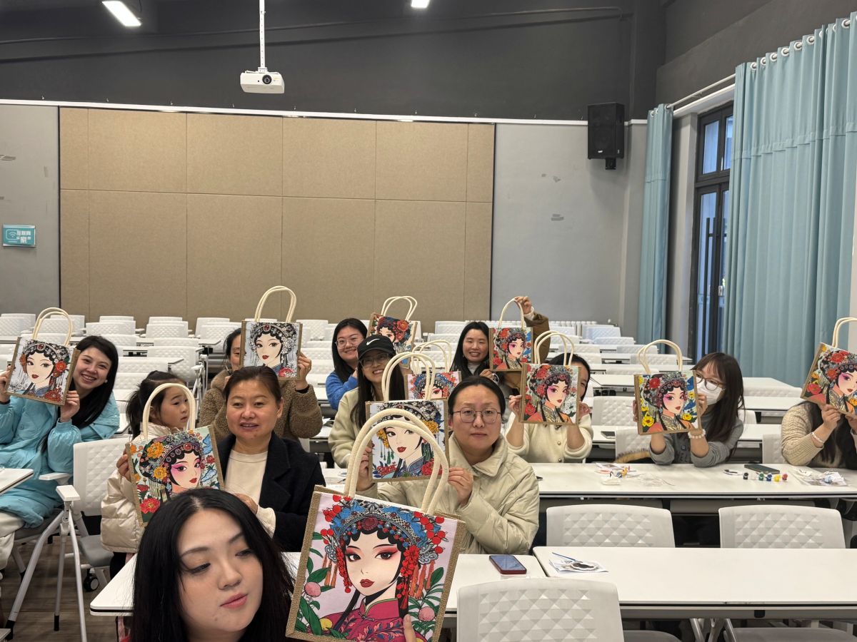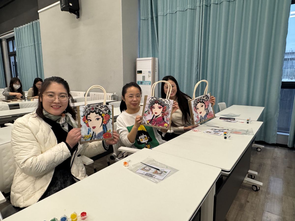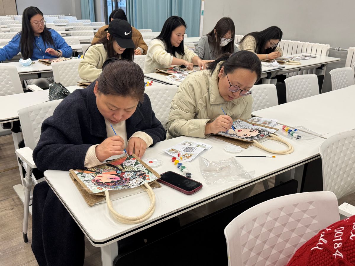 创作环节中,女职工们兴致高昂、发挥创意,将节日祝福、个性灵感融入画笔,在空白帆布包上勾勒线条、填充色彩,绘制出各具特色的作品。现场氛围轻松愉悦,大家相互交流创作心得,在动手实践中舒缓压力、陶冶情操,充分展现了新时代女教职工的风采与活力。