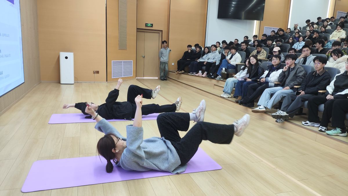 活动一开场,崔老师并未平铺直叙,而是以一组触目惊心的数据直击同学们的健康“痛点”:近二十年来大学生体质持续下滑,68%的同学存在脊柱力线偏移问题,日均久坐超9小时的大三学生占比更是高达78%,颈肩腰背痛、视力下降已然成为校园“常见病”。“别再做‘脆皮大学生’啦!健康从不是靠‘硬扛’,而是要主动争取!”话语戳中人心,让同学们纷纷点头认同,也深刻意识到告别久坐、拥抱运动早已刻不容缓。