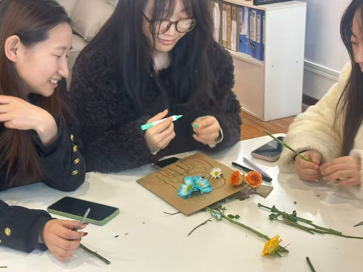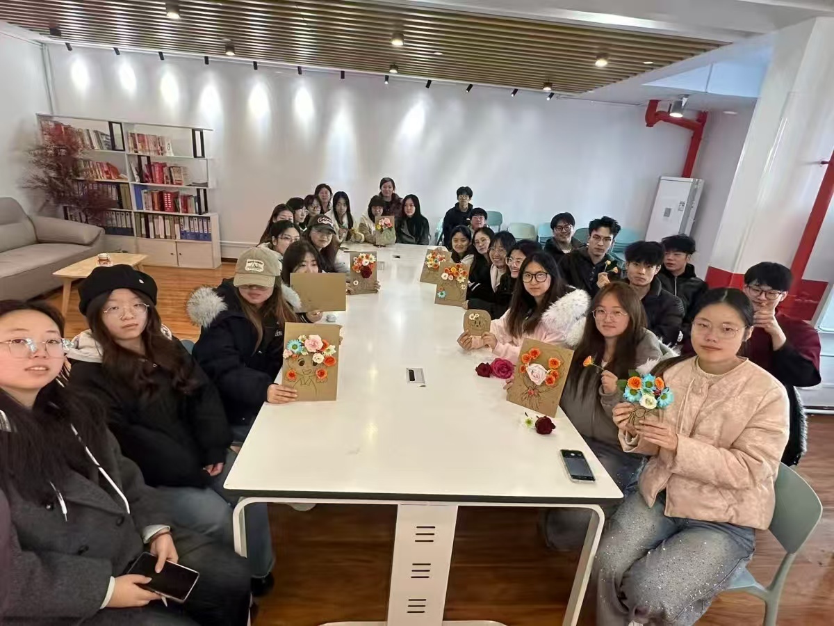 3月11日下午2:00,数字2303班在青藤书院116微光会议室,举办以“笔尖绘春,纸间藏花”为核心的纸板插花创意实践完满团支部活动。活动前期,班委精心筹备了废旧快递纸板、马克笔等创作工具,做好活动各项准备。活动开始后,班委介绍完流程与安全注意事项,同学们便开始创作,先凝神勾勒春日景致底稿,再粘贴鲜花枝叶为画作增添立体美感,创作中大家互帮互助、交流技巧,现场氛围轻松温馨。完成创作后,班级开展作品展示环节,同学们陈列、欣赏彼此风格各异的作品,相互点评夸赞,交流创作灵感与对春天的感悟。此次活动让同学们沉浸式感受春日美好,提升了审美与动手能力,增进了同学间的交流与情谊,也丰富了课余生活,激励大家以积极姿态奔赴后续学习生活。