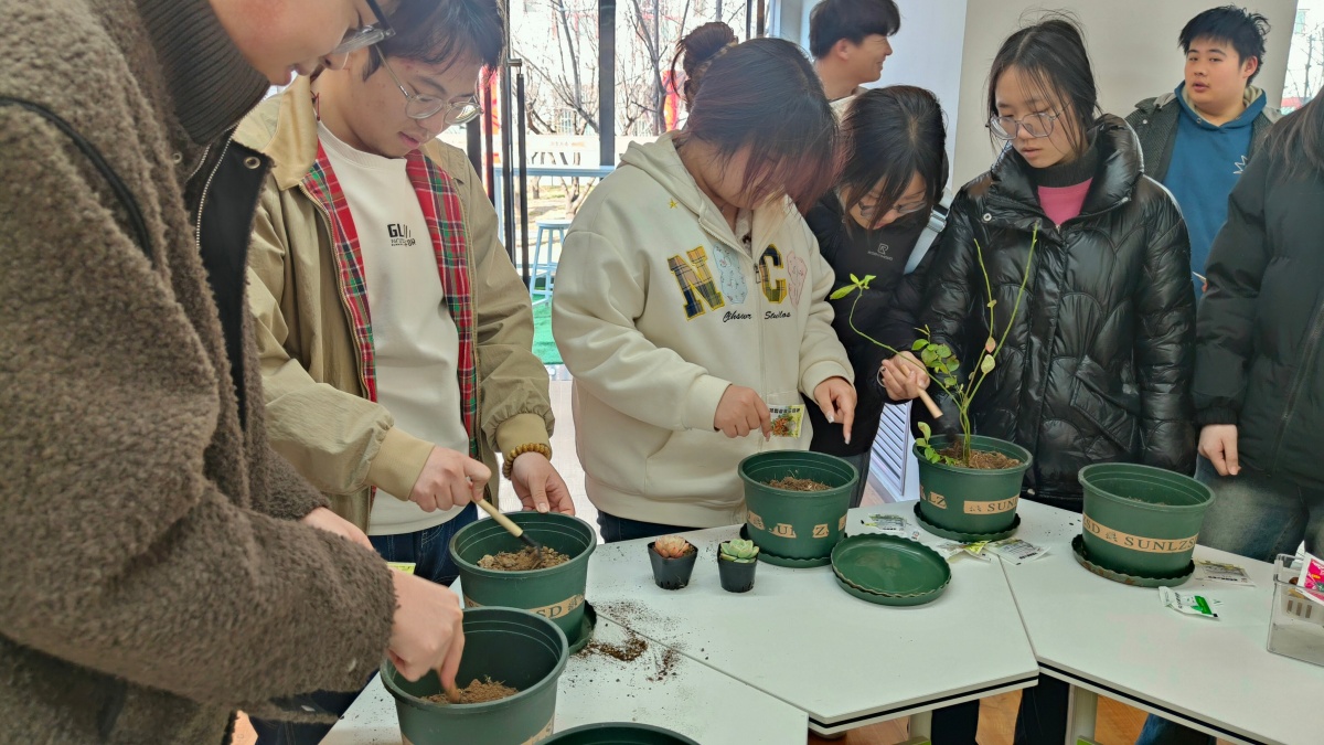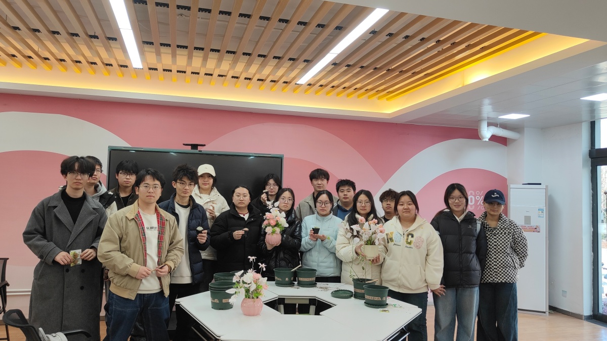 3月18日下午,软件2403班开展“慢下来,种朵花”花艺鉴赏活动。团支书讲解花艺种植要点,强调营养土松紧把控、排水孔处理等关键知识。种植环节中,同学们规范操作、细心呵护,相互交流技巧、分享创意,在亲手劳作中放下学习疲惫,感受慢生活的惬意,体会创造的快乐与守护生命的意义。此次活动提升了大家的动手与审美能力,引导同学们亲近自然、发现生活中的小美好。