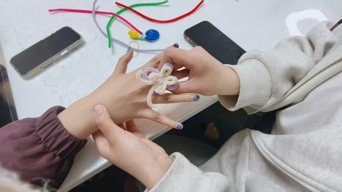 3月11日中午,数据2502班于三达书院203会议室以“扭转乾坤,棒载青春”为主题,开展扭扭棒DIY艺术实践活动。同学们在指尖缠绕、拼接中,将普通扭扭棒变成小花、小动物、卡通挂件等形态各异的作品,在互助交流中分享创作技巧。作品展示与集体合影环节,让创意与温暖定格,进一步强化了班级归属感与团队意识。