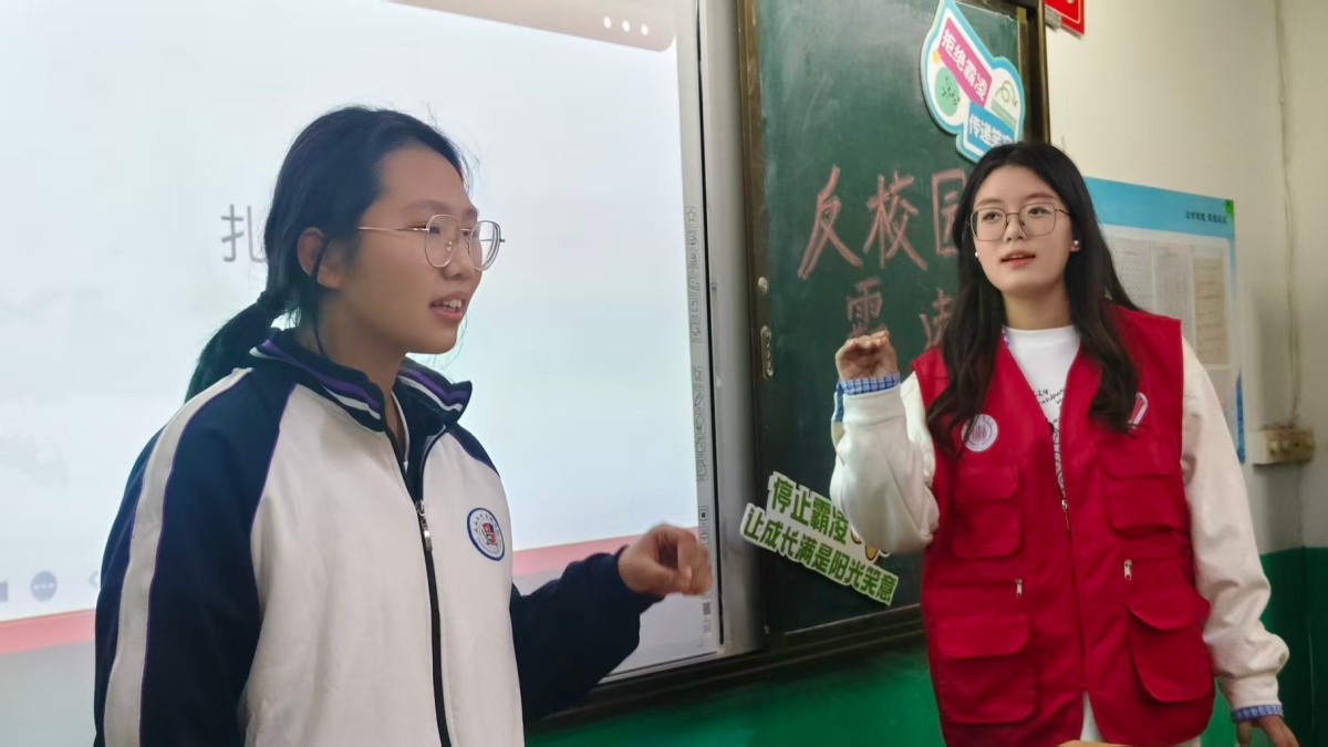 活动现场,同学们三人一组,两人根据“勒索”“扎堆起哄”“小团体孤立同学”等校园霸凌关键字以肢体为笔进行展示,一人抢答。“这是小团体孤立!”当一组同学快速猜对时,志愿者顺势讲解:“语言及网络上的伤害,和动手打人一样,都属于校园霸凌。”原本抽象的“言语霸凌”瞬间变得直观,抽象的校园霸凌概念,在表演与抢答间变得清晰可辨。