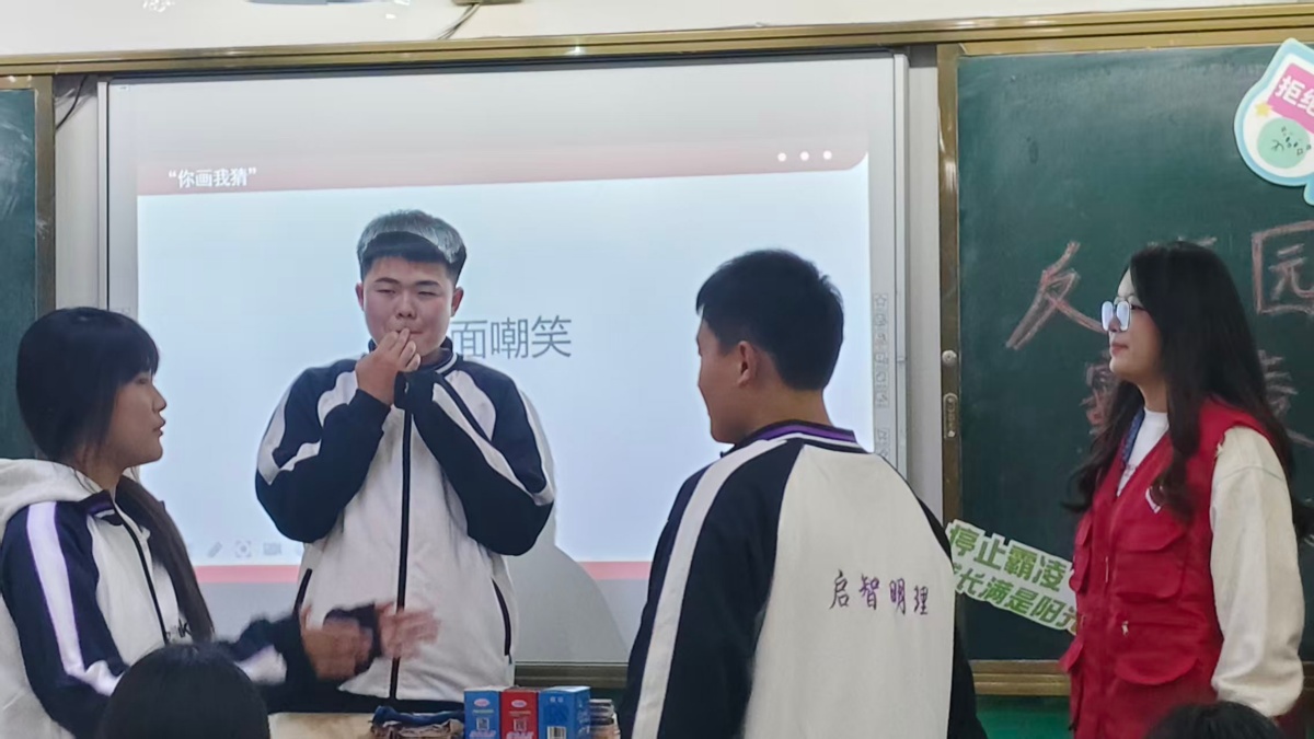 10月22日晚,“玫瑰少年”反校园霸凌专项志愿服务队于太谷二中启航学校开展“你画我猜”反校园霸凌活动。通过“你画我猜”系列游戏,让反校园霸凌宣传不再是单向的知识灌输与枯燥的理论讲解,而是人人都能看得见、猜得出,参与其中的游戏互动。通过引导同学们“主动玩”让反校园霸凌的种子在青少年心中生根发芽。