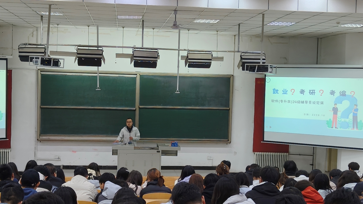 为帮助学生在考研、考公与就业的人生十字路口做出理性选择,10月20日下午,信息工程学院辅导员刘政伟老师在博学楼203教室主持开展了以“考研、考公、就业?站在十字路口的理性选择”为主题的辅导员说完满活动。活动旨在通过真实案例分享、精准数据解读及热烈互动交流,为在场学子拨开选择迷雾,指引未来方向。